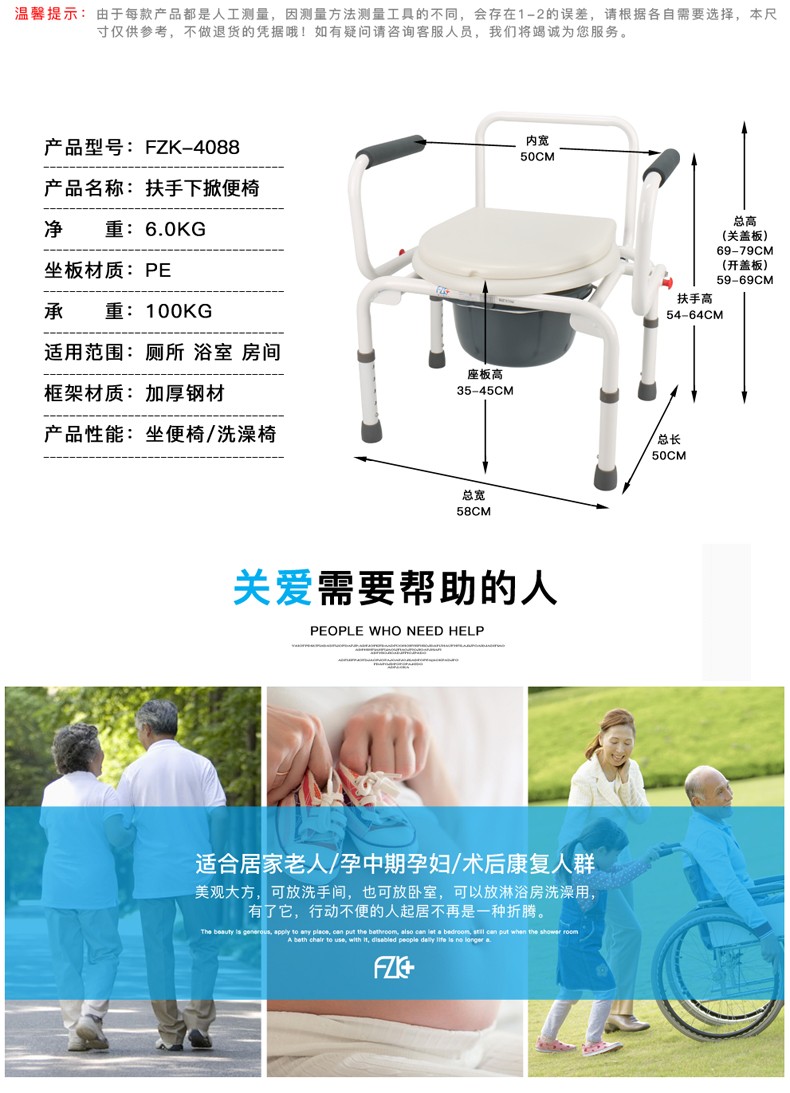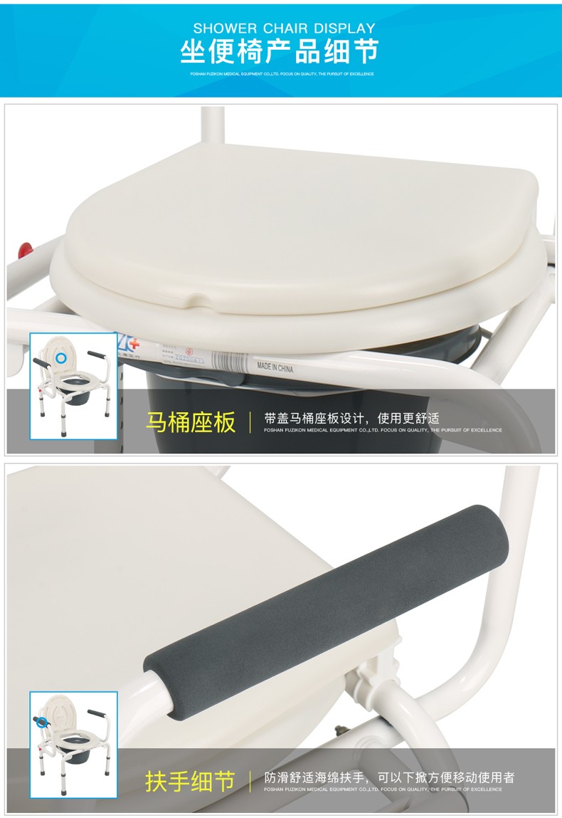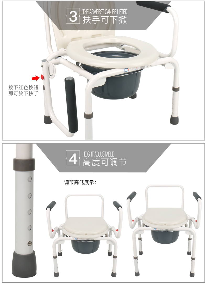 FZK-4088 COMMODE CHAIR WITH FOLDING HANDRAILS