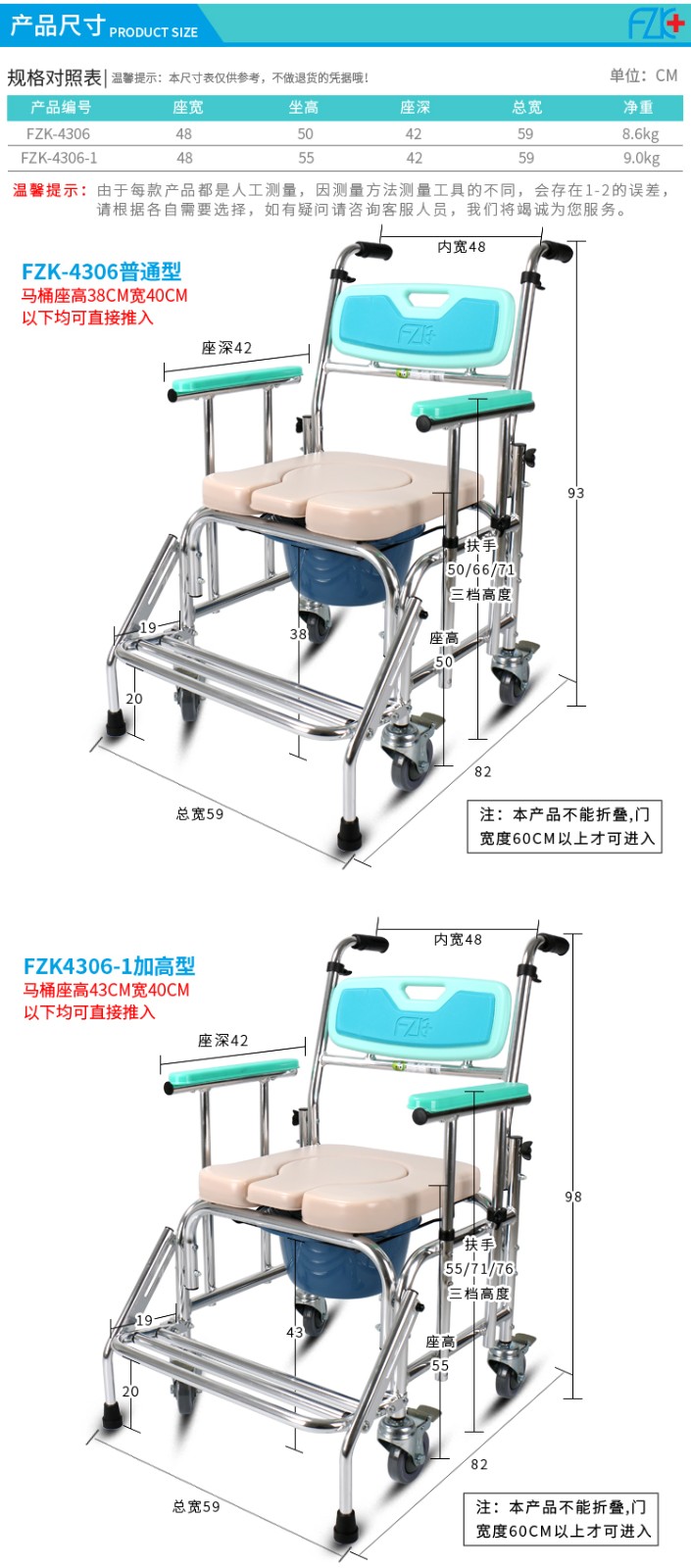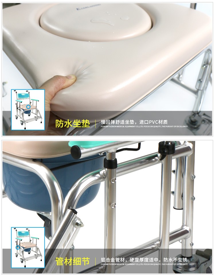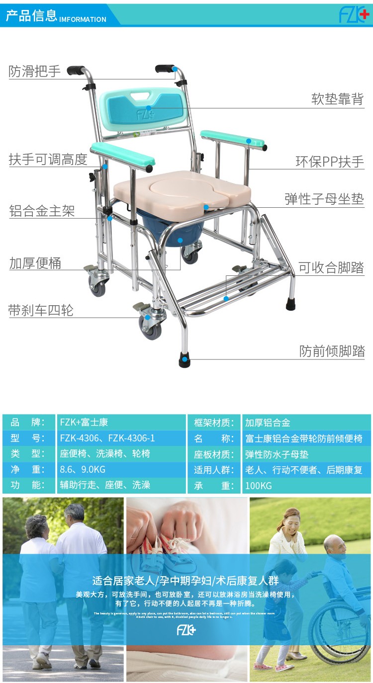 FZK-4306 ALUMINUM ADJUSTABLE ARMREST COMMODE CHAIR