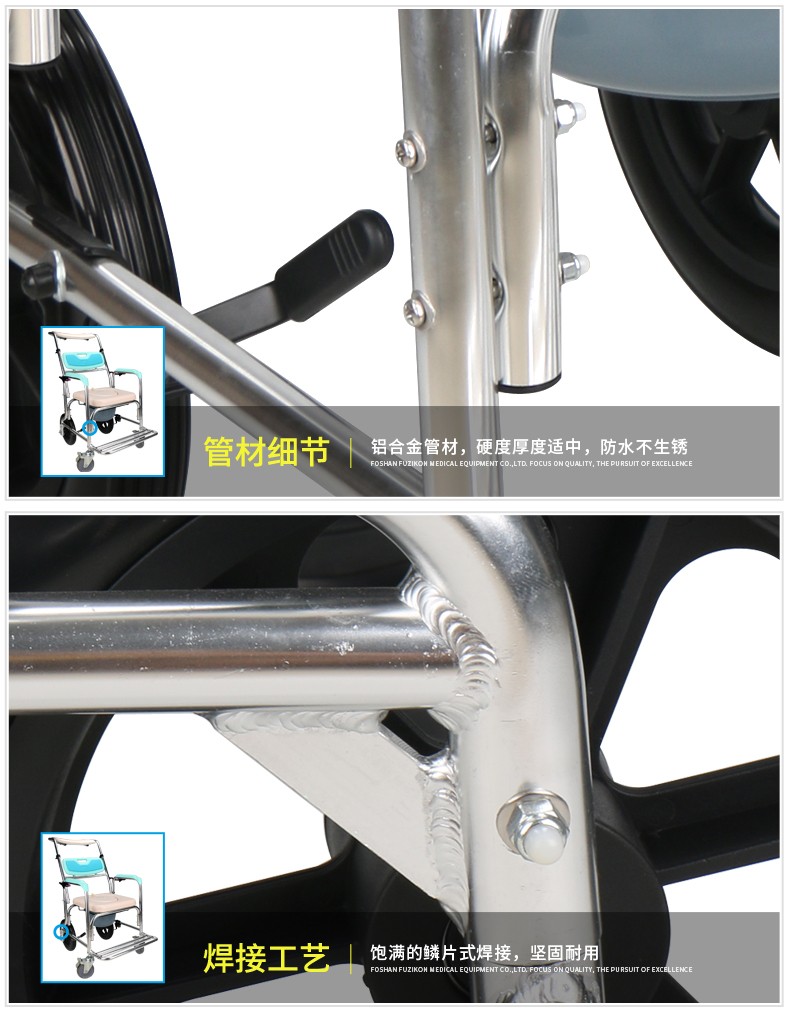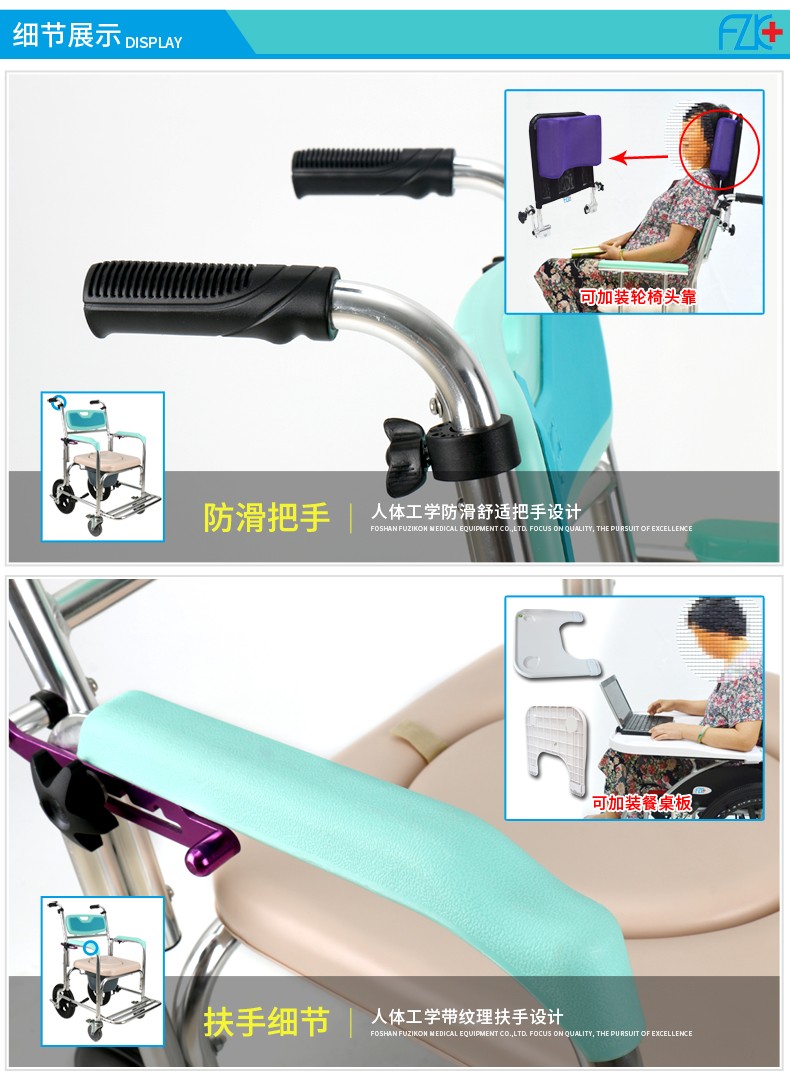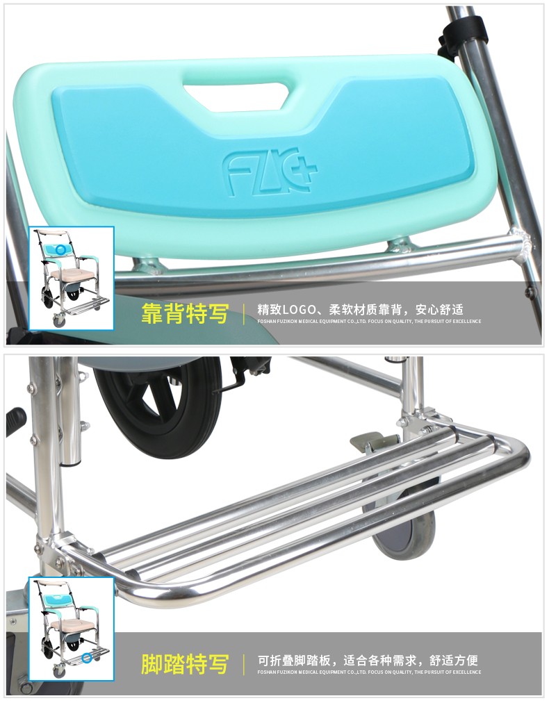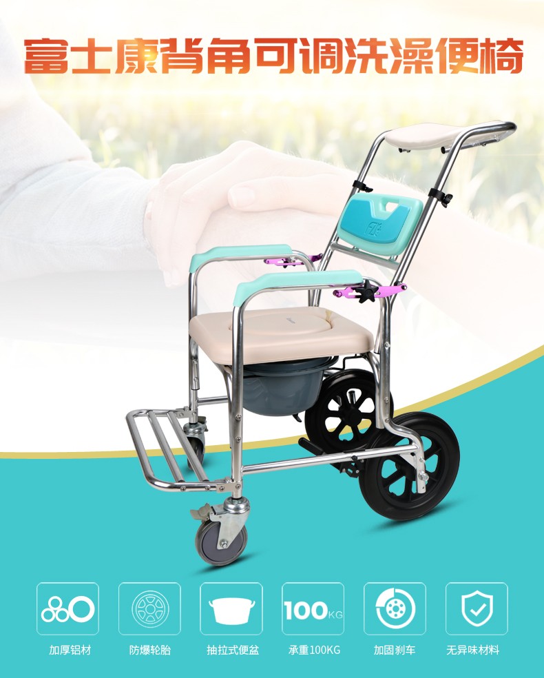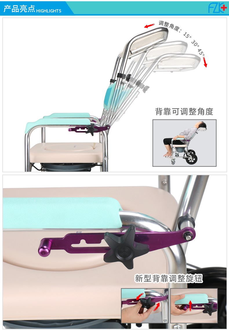FZK-4351 ALUMINUM ADJUSTABLE BACK ANGLE COMMODE CHAIR